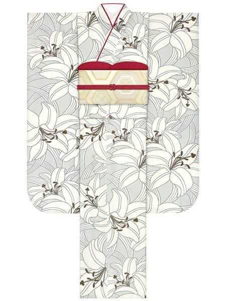 振袖レンタルセット 七宝薬玉(オフ)/帯 亀甲(赤)