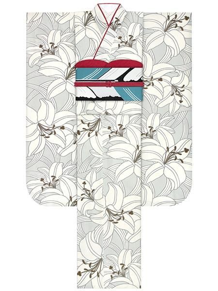振袖レンタルセット 乙女椿(オフ)/帯 亀甲(黒)