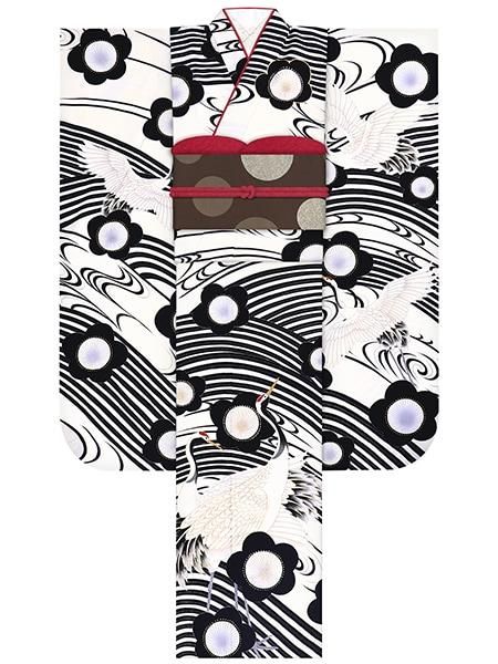 振袖レンタルセット 大梅に椿(赤)/帯 ドット(ブラウン)