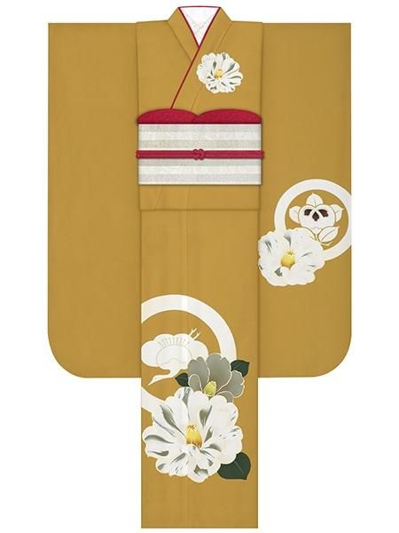 振袖レンタルセット 疋田椿(赤)/帯 縞(白金)