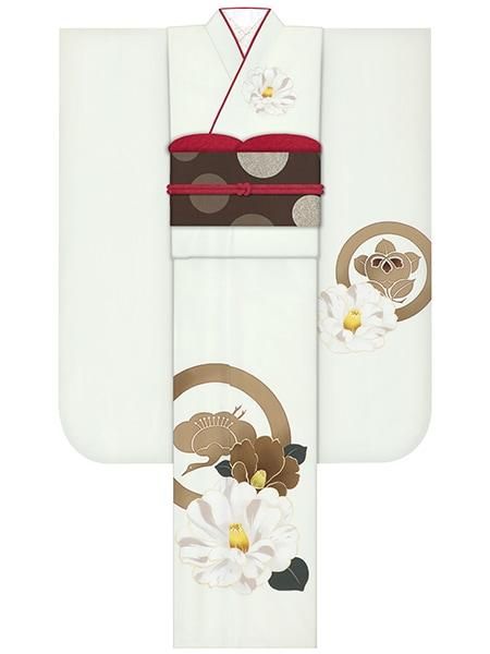 振袖レンタルセット 乙女椿(オフ)/帯 ドット(ブラウン)
