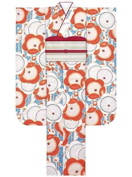 振袖レンタルセット アネモネブーケ(オフ)/帯 おしどり(白銀)