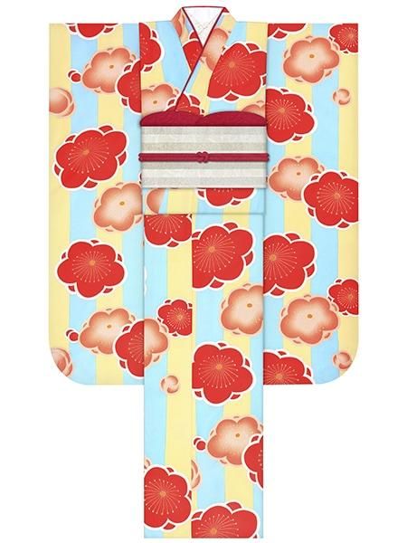 振袖レンタルセット かくれんぼ兎(ターコイズ)/帯 縞(白金)