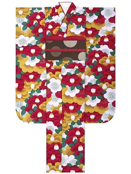 振袖レンタルセット 新梅椿(金茶)/帯 ドット(ブラウン)