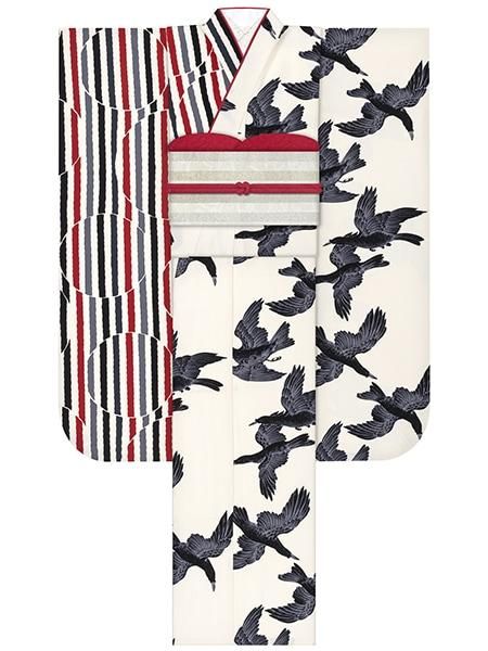 正絹振袖レンタルセット 白クジャク(白)/帯 更紗(オフ)