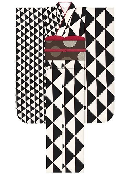 振袖レンタルセット 七宝薬玉(オフ)/帯 ドット(ブラウン)