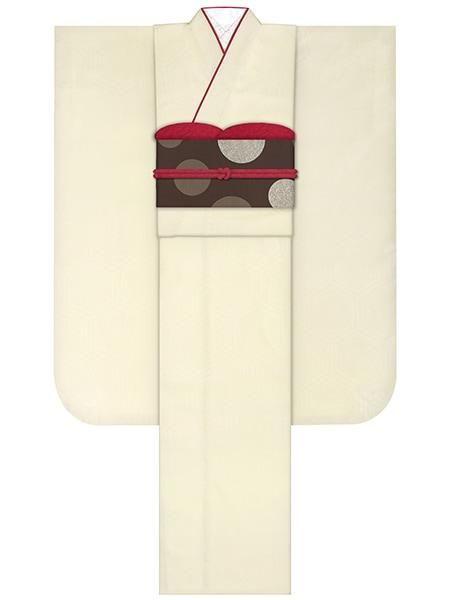 振袖レンタルセット 八咫烏×縞花丸(片身替り/オフ)/帯 縞(黒)