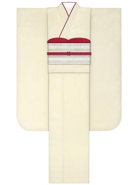 振袖レンタルセット 華亀甲(オフ)/帯 縞(白金)