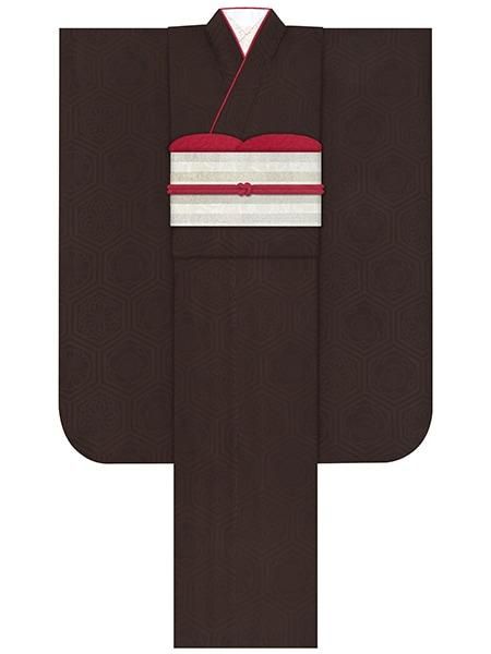 正絹振袖レンタルセット オールドローズ(グレー)/帯 花菱亀甲(黒)