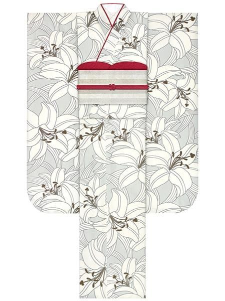 振袖レンタルセット つばき家紋(オフ)/帯 縞(黒)