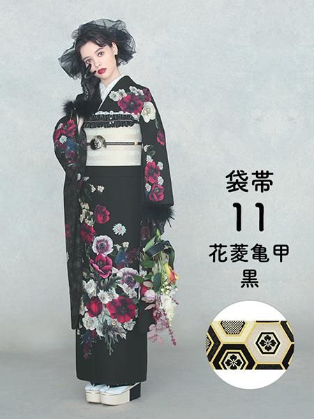 振袖レンタルセット アネモネブーケ(黒)/帯 花菱亀甲(黒)