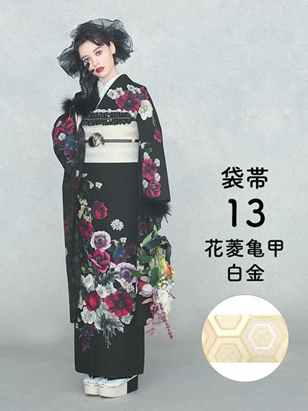 振袖レンタルセット アネモネブーケ(オフ)/帯 七宝(白金)