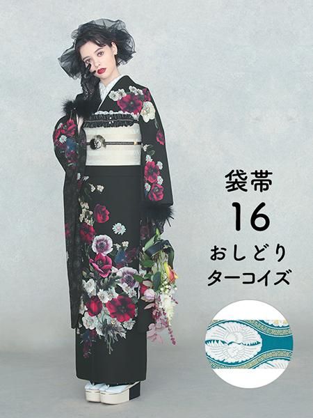 振袖レンタルセット アネモネブーケ(オフ)/帯 花菱亀甲(黒)