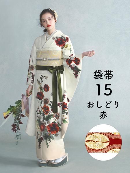 振袖レンタルセット アネモネブーケ(黒)/帯 おしどり(黒)