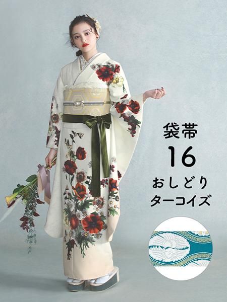 振袖レンタルセット 梅と椿と楓(オフ)/帯 亀甲(赤)