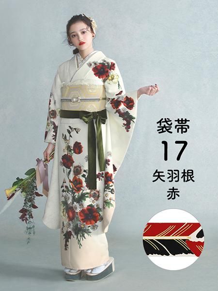 振袖レンタルセット アネモネブーケ(オフ)/帯 矢羽根(赤)