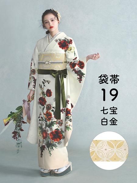 振袖レンタルセット 菊(ベージュ)/帯 おしどり(赤)