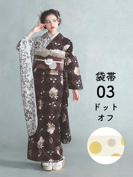 正絹振袖レンタルセット 牡丹菊薬玉(クリームイエロー)/帯 ドット(赤)