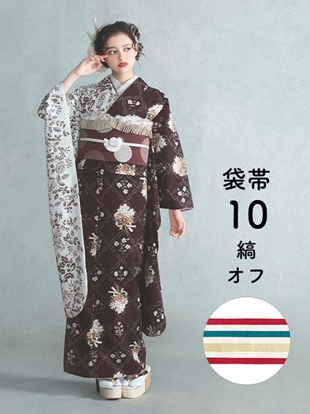 正絹振袖レンタルセット 菊と桜(くすみピンク)/帯 ドット(ブラウン)