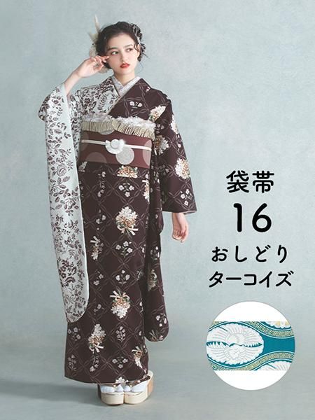 振袖レンタルセット ロココ(ピンク)/帯 花菱亀甲(緑)