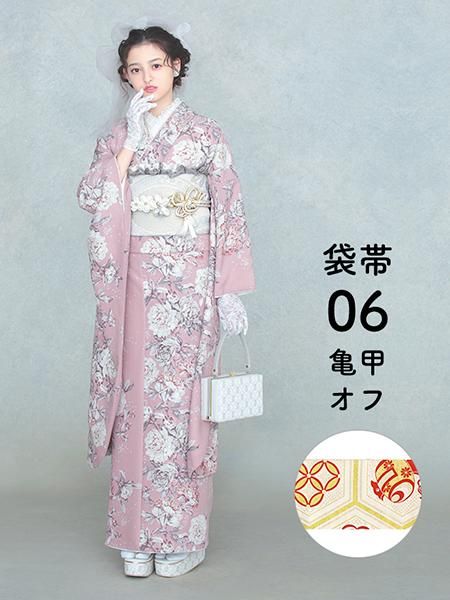 正絹振袖レンタルセット オールドローズ(グレー)/帯 花菱亀甲(黒)
