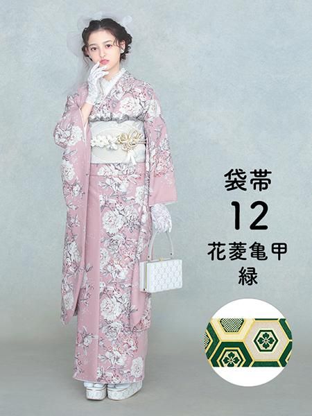 振袖レンタルセット 華亀甲(オフ)/帯 花菱亀甲(白金)