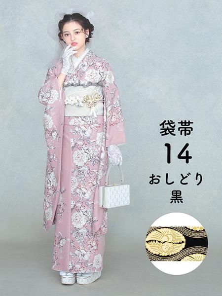 振袖レンタルセット アネモネブーケ(オフ)/帯 おしどり(白銀)