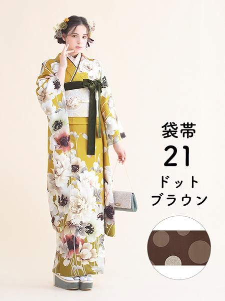 正絹振袖レンタルセット オールドフラワー(カラシ)/帯 ドット(ブラウン)
