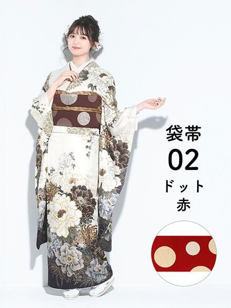 振袖レンタルセット 乙女椿(オフ)/帯 おしどり(赤)