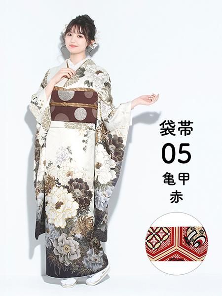 振袖レンタルセット 疋田乱菊(赤)/帯 おしどり(白銀)