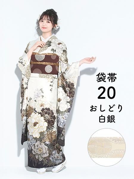 振袖レンタルセット 七宝薬玉(オフ)/帯 縞(白金)