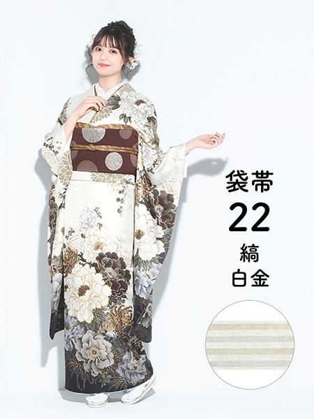 振袖レンタルセット 百合(グレー)/帯 縞(黒)