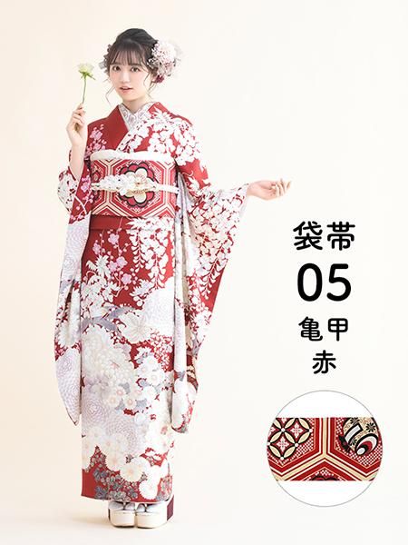 振袖レンタルセット ロココ(ピンク)/帯 花菱亀甲(黒)