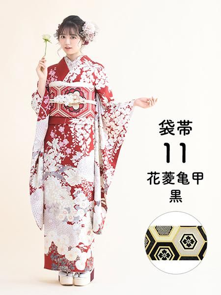 振袖レンタルセット 椿(黒)/帯 ドット(黒)