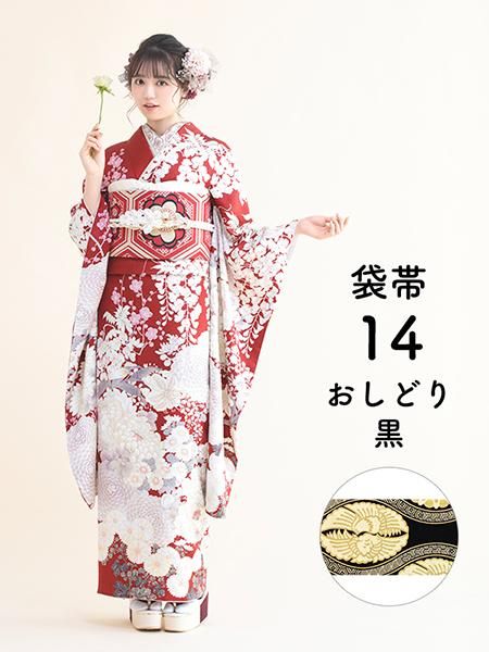 振袖レンタルセット ラヴィアンローズ(黒)/帯 ドット(オフ)