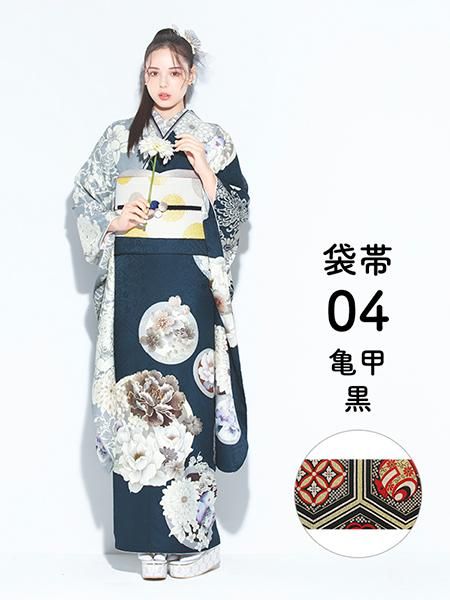 振袖レンタルセット 椿(黒)/帯 縞(黒)