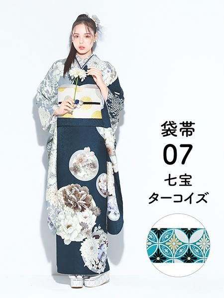 正絹振袖レンタルセット 白クジャク(白)/帯 矢羽根(赤)